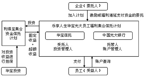 中国光大银行与华宝信托有限责任公司合作推出创新型产品——乐享人生华宝光大员工福利集合信托计划(以下简称“乐享人生”),是为满足企业中长 期激励约束制度和福利制度的资金管理、账户管理等需求而专门定制的最佳解决方案,帮助企业实施激励和福利制度递延支付和运营管理,为企业人力资源战略的实 施和发展提供强力支持。